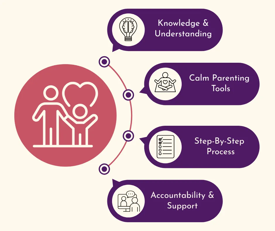 12-weeks worth of recoded videos, all the program descriptions and resources (including the Calm Parenting Course)